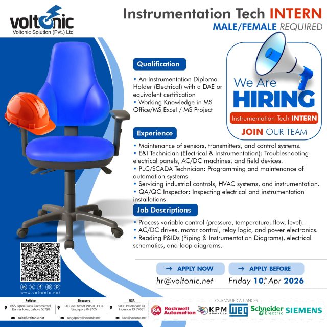 Instrumentation Tech INTERN (Male/Female) Required for April 2026